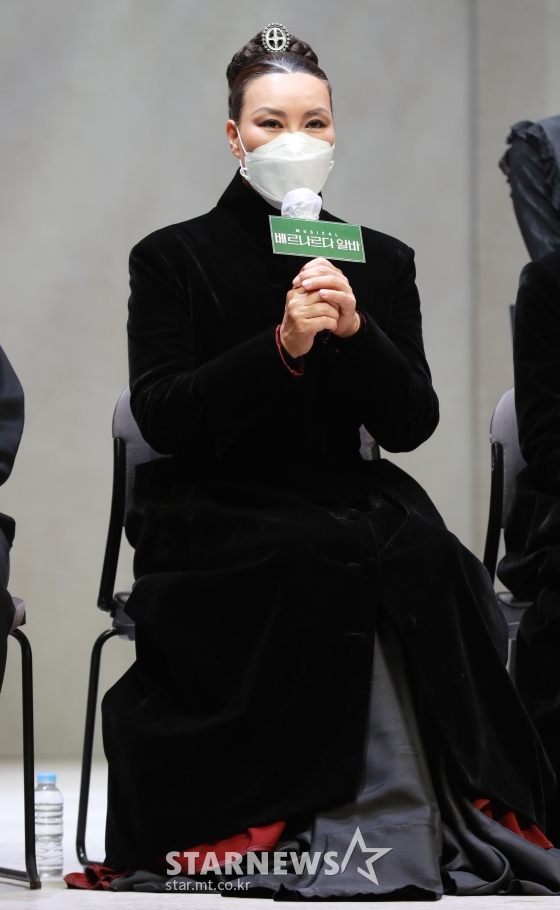 22일 오후 서울 중구 정동극장에서 뮤지컬 '베르나르다 알바' 프레스콜이 열렸다. 이 자리에는 김희철 대표이사, 연태흠 연출, 김성수 음악감독, 이혜정 안무가, 정영주 프로듀서 겸 배우, 배우 이소정, 강애심, 황석정, 한지연, 이영미, 최유하, 김려원, 임진아, 황한나, 정가희, 김환희, 김국희, 전성민, 오소연, 김히어라, 이진경, 이상아가 참석했다.