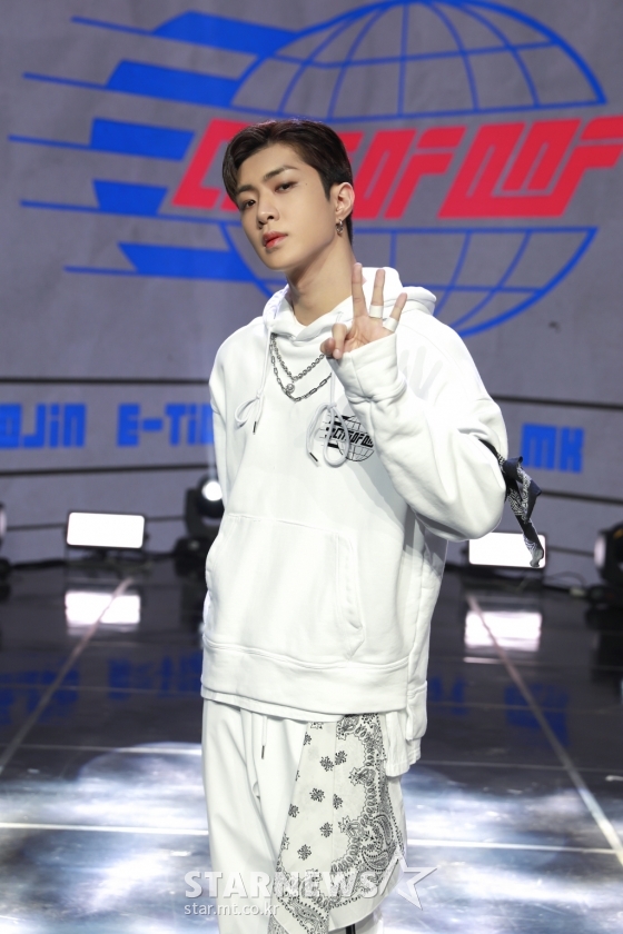 그룹 '온앤오프'(ONF) 와이엇이 28일 오후 온라인 생중계로 진행된 정규 1집 리패키지 앨범 'CITY OF ONF' 발매 기념 쇼케이스에서 포즈를 취하고 있다. /사진제공=WM엔터테인먼트 2021.04.28