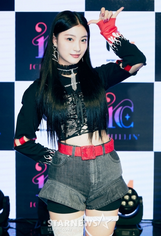 신인 걸그룹 아이칠린 예주가 8일 오전 온라인으로 진행된 데뷔곡 '갓챠(GOT'YA)' 발매 기념 쇼케이스에서 포즈를 취하고 있다.