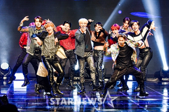 한일 합작 11인조 보이그룹 니크(NIK)가 27일 오후 온라인 생중계로 진행된 데뷔 싱글 앨범 '산타 모니카/유니버스'(Santa Monica/Universe) 쇼케이스에서 신곡을 선보이고 있다.