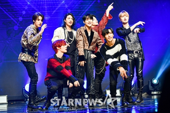 한일 합작 11인조 보이그룹 니크(NIK)가 27일 오후 온라인 생중계로 진행된 데뷔 싱글 앨범 '산타 모니카/유니버스'(Santa Monica/Universe) 쇼케이스에서 신곡을 선보이고 있다.
