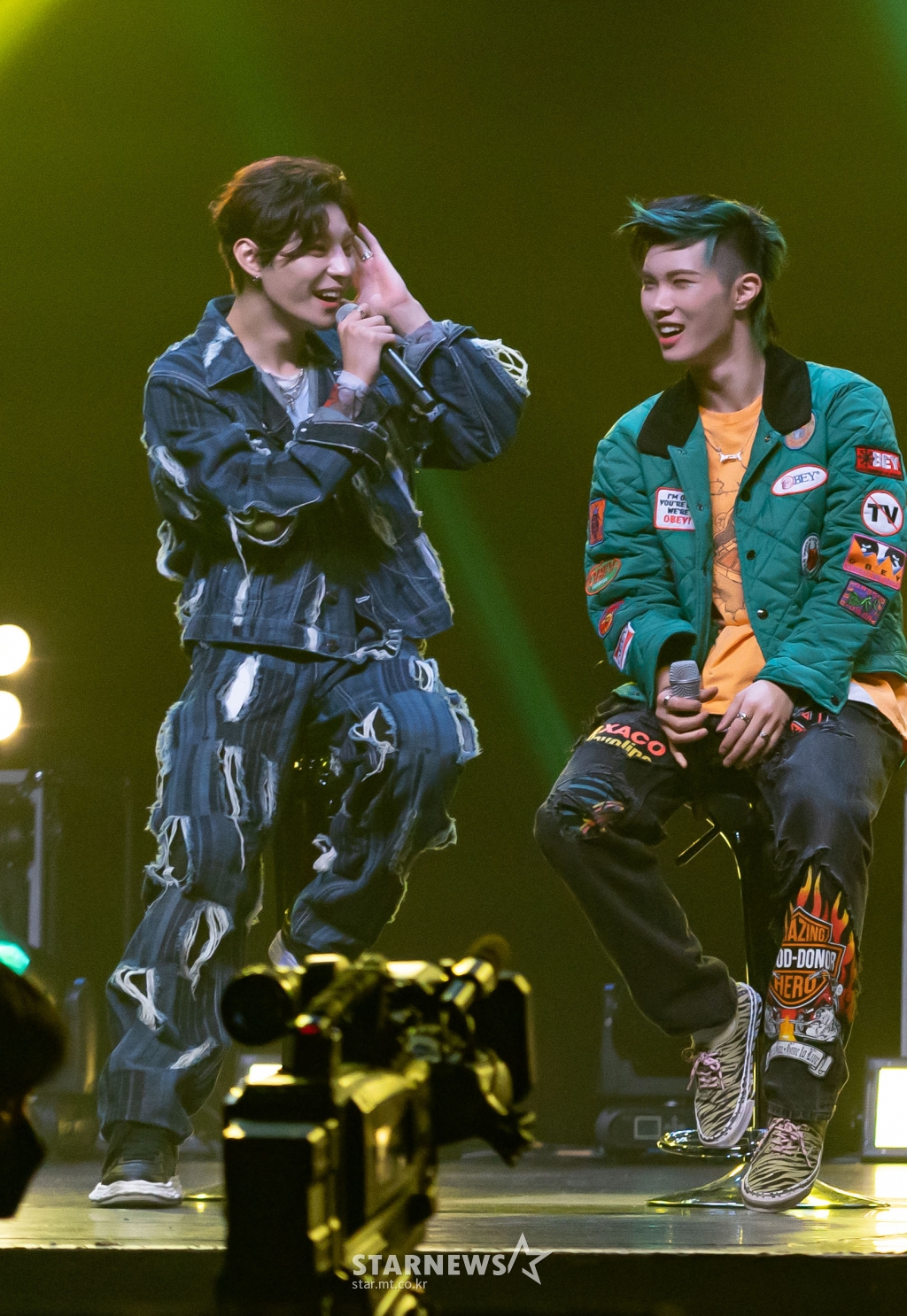 그룹 블리처스(BLITZERS)가 6일 오후 온라인 생중계로 진행된 두 번째 EP '싯-벨트'(SEAT-BELT) 발매기념 쇼케이스에서 질문에 답하고 있다.