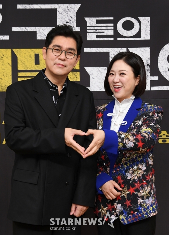 연예대중문화김용만-김숙 '호구들의 손하트'[★포토]발행 : 2021.11.15 ・ 11:43이동훈 기자개그맨 김용만, 김숙이 15일 오전 온라인 생중계로 진행된 SBS 새 예능 '호구들의 비밀과외' 기자간담회에 참석해 포즈를 취하고 있다.각종 업계의 전문가가 반면교사로 나서 우리를 호구로 만드는 업계의 비밀과 뒷이야기를 털어놓는 블라인드 가면 토크쇼 '호구들의 비밀과외'는 15일, 17일 2부작으로 방송된다. /사진제공=SBS 2021.11.15<저작권자 © 스타뉴스, 무단전재 및 재배포 금지>호구들의비밀과외추천 기사이동훈 기자기자홈좋아요 연예-대중문화의 인기 급상승 뉴스연예-대중문화의 최신 뉴스