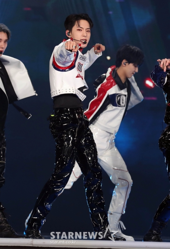그룹 세븐틴(Seventeen) 호시가 2일 오후 방송된 2021 Asia Artist Awards(2021 아시아 아티스트 어워즈, 2021 AAA) 시상식에서 멋진 무대를 선보이고 있다.