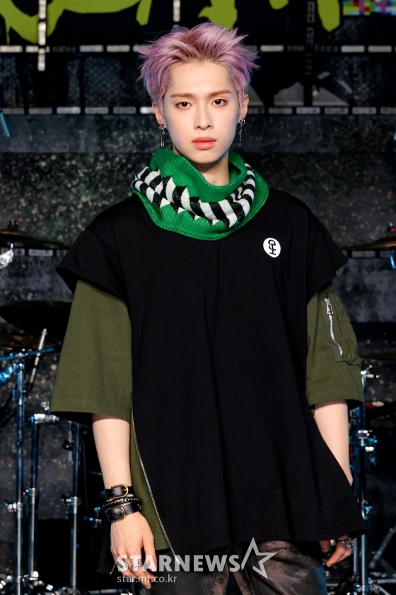 JYP의 신인 밴드 엑스디너리 히어로즈(Xdinary Heroes, XH) 가온이 6일 오후 온라인 생중계로 진행된 첫 번째 디지털 싱글 '해피 데스 데이'(Happy Death Day) 발매기념 쇼케이스에 앞서 포즈를 취하고 있다.