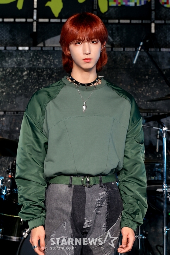 JYP의 신인 밴드 엑스디너리 히어로즈(Xdinary Heroes, XH) 준한이 6일 오후 온라인 생중계로 진행된 첫 번째 디지털 싱글 '해피 데스 데이'(Happy Death Day) 발매기념 쇼케이스에 앞서 포즈를 취하고 있다.