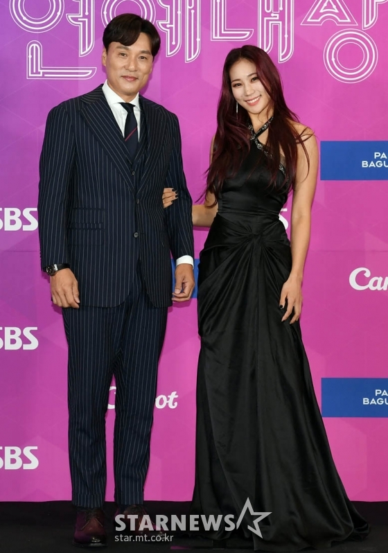 이승엽과 유현주 프로골퍼가 18일 오후 서울 상암동 SBS프리즘타워에서 열린 '2021 SBS 연예대상' 레드카펫 행사에 참석해 포즈를 취하고 있다. 2021.12.18 <사진=SBS>