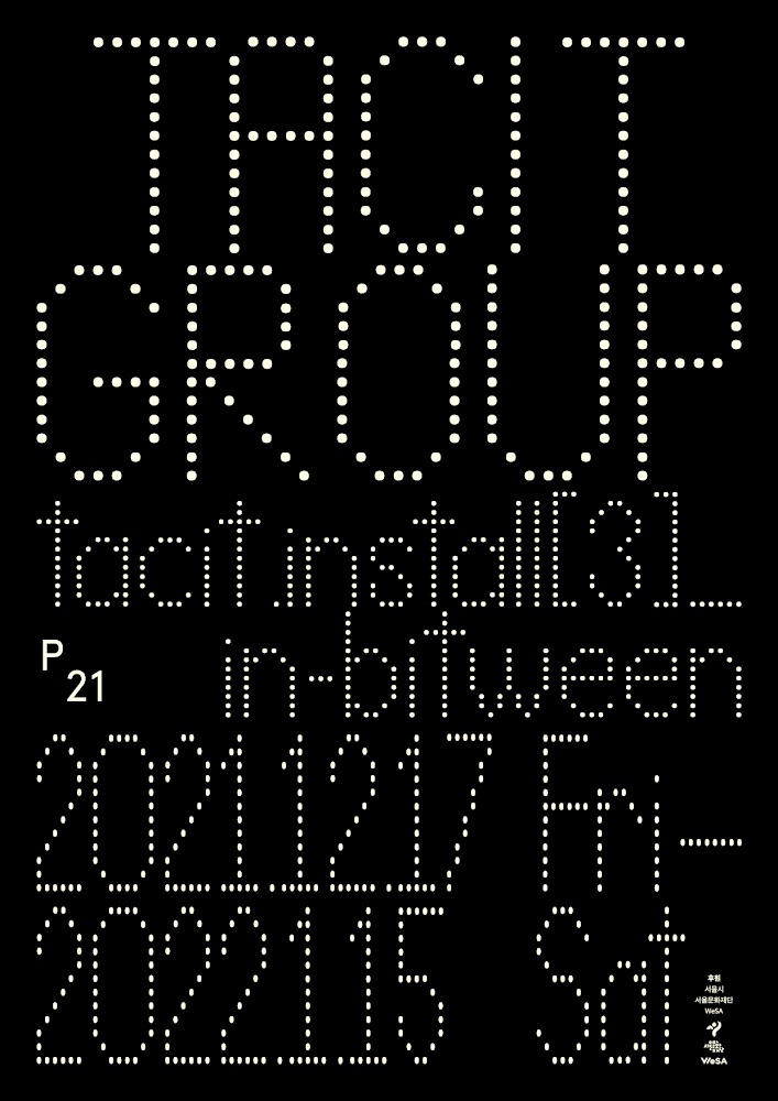 태싯그룹은 네 번째 개인전 '인비트윈 (tacit.install[3]_in-bitween)'를 통해 오랜 기간 지속해온 한글 작업과 빛 작업을 확장한 새로운 설치 작업을 선보인다. 글자가 해체되고 변형되다가 다른 글자로 바뀌는 과정과 순간들을 시각과 청각을 통해 경험하도록 제시한다.