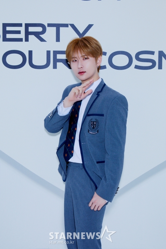 그룹 크래비티(CRAVITY) 우빈이 22일 오후 온라인 생중계로 진행된 정규앨범 파트 2 'LIBERTY: IN OUR COSMOS'(리버티: 인 아워 코스모스) 발매기념 기자간담회에 앞서 포즈를 취하고 있다.