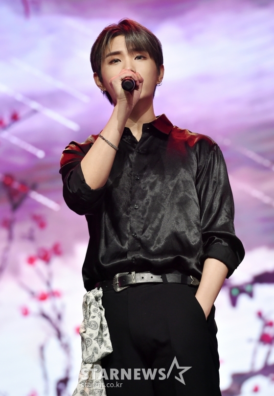 그룹 킹덤(KINGDOM) 치우가 31일 오후 온라인 생중계로 진행된 미니 4집 '히스토리 오브 킹덤 : 파트 4. 단' 발매기념 쇼케이스에서 신곡을 선보이고 있다.