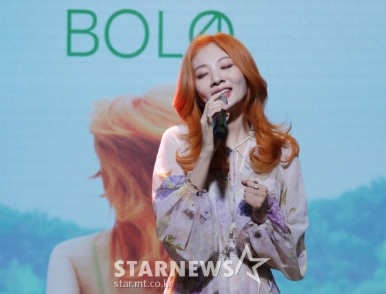 볼빨간사춘기 가수 안지영이 20일 오후 온라인 생중계로 진헹된 새 미니앨범 'Seoul'(서울) 발매기념 쇼케이스에서 신곡을 선보이고 있다.