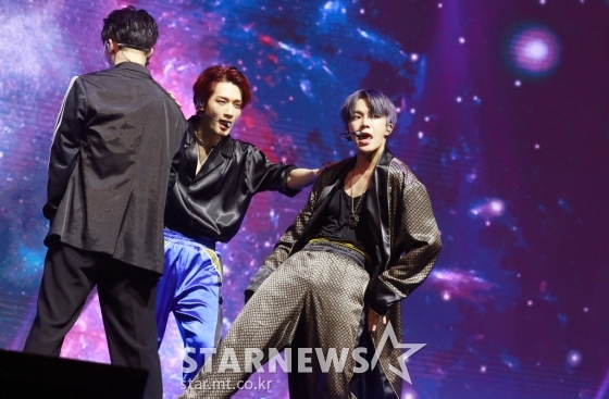 그룹 베리베리(VERIVERY)가 25일 오후 서울 광진구 예스24 라이브홀에서 진헹된 첫 정규 앨범 'VERIVERY SERIES O [ROUND 3 : WHOLE]' 발매기념 쇼케이스에서 신곡을 선보이고 있다.