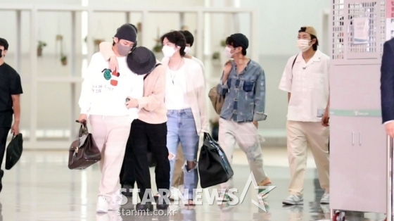 연예대중문화방탄소년단 '백악관 다녀올게요!'[영상]발행 : 2022.05.29 ・ 10:17인천국제공항=임성균 기자그룹 방탄소년단(BTS) 슈가, 진, RM, 제이홉, 뷔, 지민이 조 바이든 미국대통령 초청으로 오는 31일 백악관에서 '반(反)아시안 증오범죄' 퇴치 논의를 위해 29일 오후 인천국제공항을 통해 출국하고 있다. 2022.05.29<저작권자 © 스타뉴스, 무단전재 및 재배포 금지>공항패션방탄소년단지민제이홉슈가RM추천 기사임성균 기자기자홈좋아요 연예-대중문화의 인기 급상승 뉴스연예-대중문화의 최신 뉴스