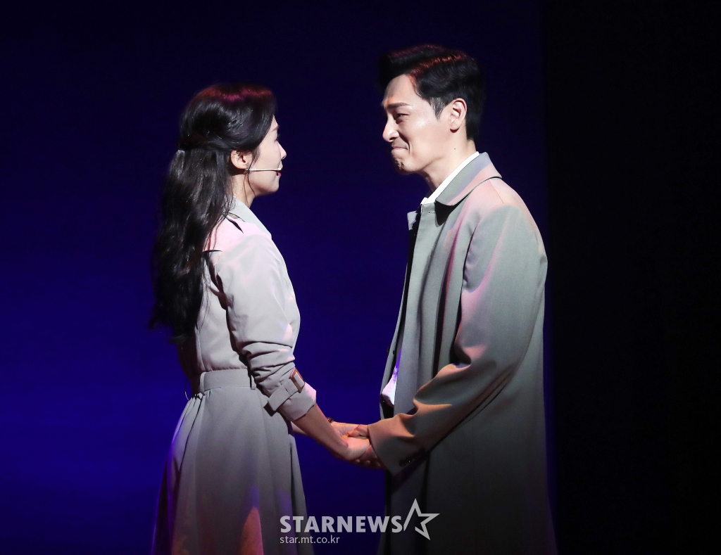 뮤지컬배우 이정화, 이창용이 30일 오후 서울 종로구 홍익대 대학로 아트센터 대극장에서 진행된 뮤지컬 '번지점프를 하다' 프레스콜에 참석해 열연하고 있다.