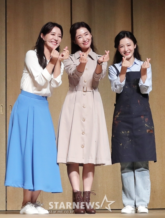 뮤지컬배우 고은영, 이정화, 최연우가 30일 오후 서울 종로구 홍익대 대학로 아트센터 대극장에서 진행된 뮤지컬 '번지점프를 하다' 프레스콜에 참석해 포즈를 취하고 있다.