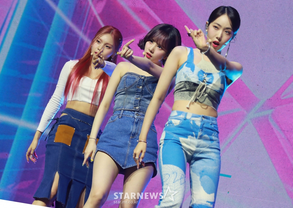 걸그룹 비비지(VIVIZ)가 6일 오후 서울 광진구 예스24라이브홀에서 진행된 두 번째 미니앨범 ‘Summer Vibe'(서머 바이브) 발매기념 쇼케이스에서 신곡을 선보이고 있다.