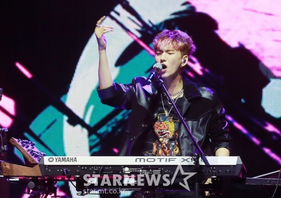 보이밴드 엑스디너리 히어로즈(Xdinary Heroes) 오드가 20일 오후 서울 용산구 블루스퀘어에서 진행된 데뷔 첫 미니 앨범 '헬로, 월드!'(Hello, world!) 발매기념 쇼케이스에서 멋진 무대를 펼치고 있다.