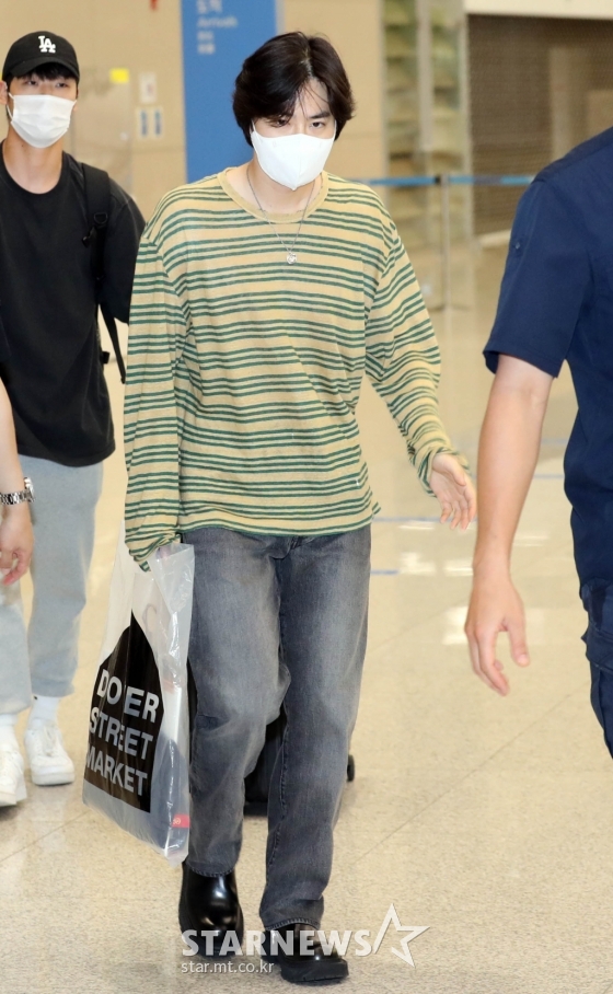 그룹 엑소(EXO) 수호가 영국 런던 공연을 마치고 2일 오후 인천국제공항을 통해 입국하고 있다. 2022.08.02