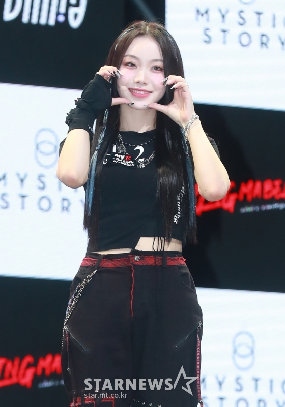 걸그룹 빌리(Billlie) 수현이 31일 오후 서울 광진구 예스24라이브홀에서 진행된 세 번째 미니앨범 'the Billage of perception: chapter two'(더 빌리지 오브 퍼셉션: 챕터 투) 발매기념 쇼케이스에서 포즈를 취하고 있다.
