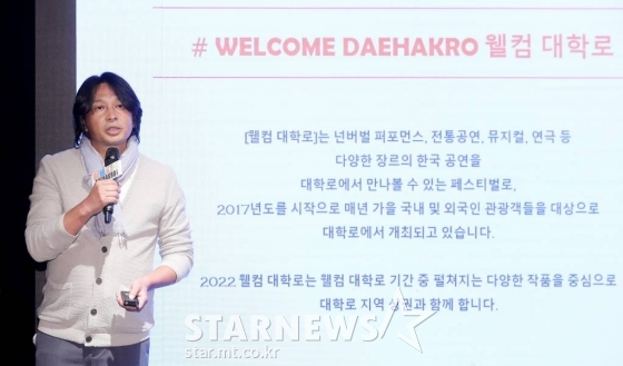 21일 서울시 성북구 서경대학교 공연예술센터에서 2022 웰컴 대학로 기자간담회가 개최됐다. 자리에는 이재원 총감독, 한국관광공사 유진호 실장, 한국공연관광협회 김경훈 회장, 배우 오영수, 댄서 모니카가 참석했다.