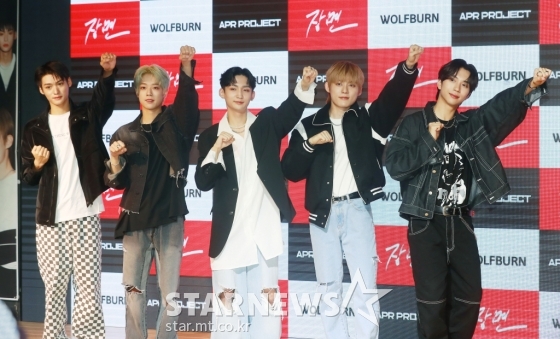 그룹 APR PROJECT와 피처링을 맡은 TRCNG 전 멤버 호현이 7일 오후 서울 강남구 바나나홀에서 진행된 새 싱글 'BOYHOOD I S#2' 발매기념 쇼케이스에 참석해 포즈를 취하고 있다.