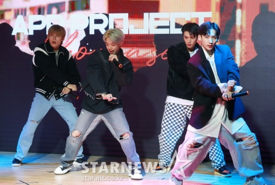 그룹 APR PROJECT가 7일 오후 서울 강남구 바나나홀에서 진행된 새 싱글 'BOYHOOD I S#2' 발매기념 쇼케이스에 참석해 신곡을 선보이고 있다.