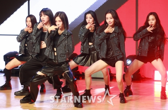 신인 걸그룹 퀸즈아이(Queenz Eye)가 24일 오후 서울 강남구 일지아트홀에서 진행된 데뷔 앨범 '퀸즈 테이블'(Queenz Table) 발매기념 쇼케이스에서 신곡을 선보이고 있다.