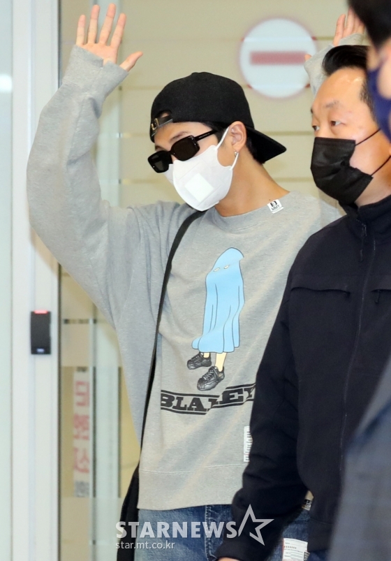 연예대중문화BTS RM '아미에게 전하는 입국인사'[★포토]발행 : 2022.11.24 ・ 19:04인천국제공항=임성균 기자그룹 방탄소년단 RM이 뉴욕에서의 일정을 마치고 24일 오후 인천국제공항을 통해 입국하고 있다. 2022.11.24<저작권자 © 스타뉴스, 무단전재 및 재배포 금지>공항패션방탄소년단BTSRM추천 기사임성균 기자기자홈좋아요 연예-대중문화의 인기 급상승 뉴스연예-대중문화의 최신 뉴스