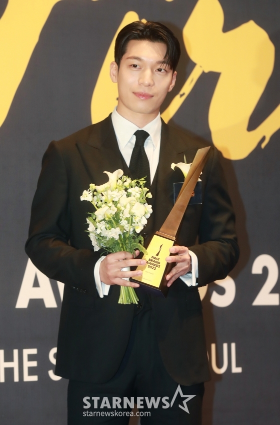 배우 위하준이 17일 오후 서울 중구 신라호텔에서 진행된 2023 대한민국 퍼스트브랜드 대상 시상식에 참석해 포즈를 취하고 있다. 위하준은 남자배우 라이징스타 부문에 선정됐다. /2023.01.17