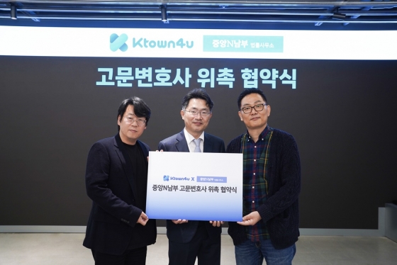 케이타운포유 송효민 대표 / 중앙N남부 법률사무소 이정수 변호사 / 케이타운포유 이종균 부대 (좌에서 우 기준) /사진제공=케이타운포유