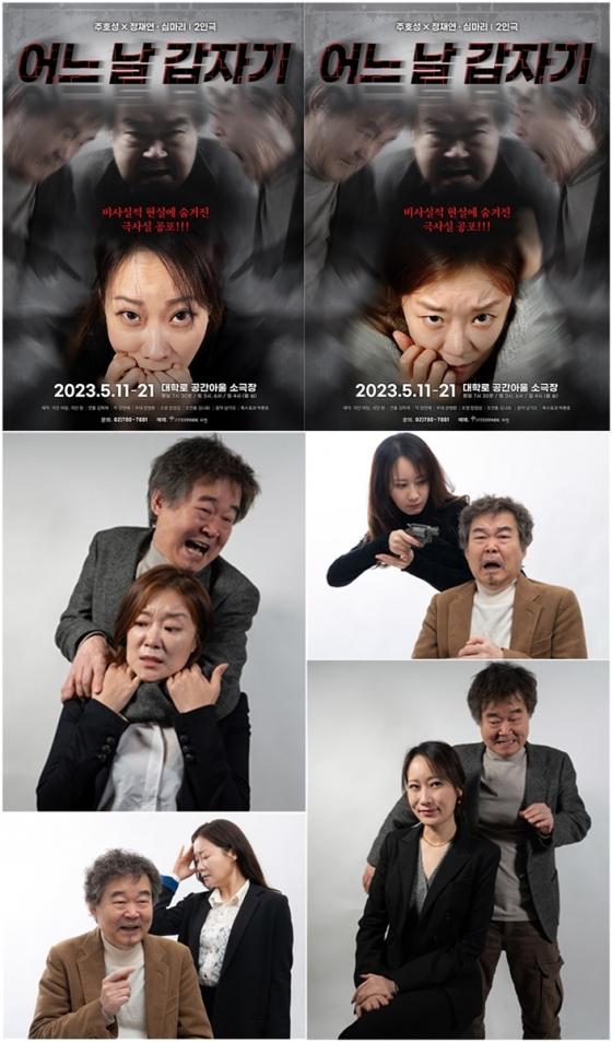 2인극 '어느 날 갑자기'는 오는 5월 11일(목)부터 21일(일)까지 대학로 '공간 아울'에서 공연되며 예매는 인터파크에서 가능하다.