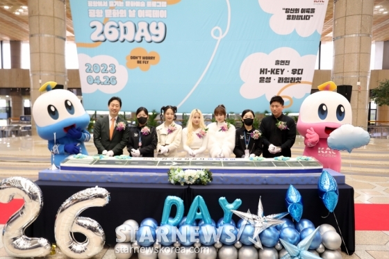연예대중문화한국공항공사, 매월 26일 이륙데이' [★포토]발행 : 2023.04.26 ・ 15:42김포국제공항=임성균 기자한국공항공사 윤형중 사장(왼쪽), 그룹 라임라잇 등 참석자들이 26일 오후 서울 김포공항 국제선 청사 출국장에서 열린 '이륙데이 기념식'에서 케이크 커팅을 하고 있다. 2023.04.26<저작권자 © 스타뉴스, 무단전재 및 재배포 금지>이륙데이26일항국공항공사추천 기사임성균 기자기자홈좋아요 연예-대중문화의 인기 급상승 뉴스연예-대중문화의 최신 뉴스