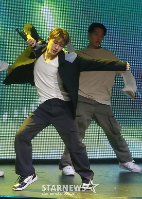 가수 비아이(B.I)가 1일 오후 서울 마포구 메세나폴리스에서 진행된 새 정규 앨범 '투 다이 포'(TO DIE FOR) 발매기념 쇼케이스에서 신곡을 선보이고 있다.