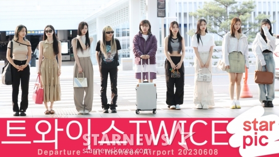 그룹 트와이스 지효, 나연, 다현, 미나, 채영, 쯔위, 모모, 사나, 지효, 정연이 미국투어 공연을 위해 8일 오후 인천국제공항을 통해 출국하고 있다. 2023.06.08