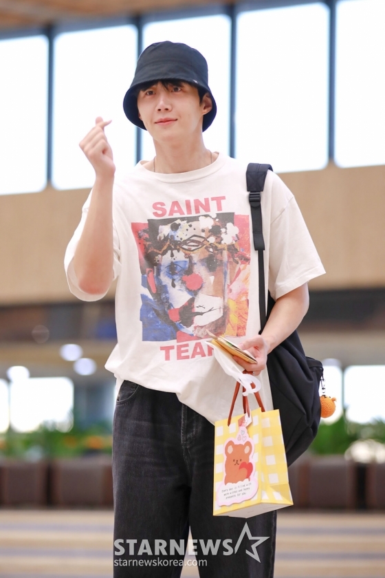 연예대중문화김선호(KimSeonHo), '팬들에게 보내는 하트' [★포토]발행 : 2023.07.07 ・ 19:17오찬우 기자배우 김선호가 7일 오후 '2023 Asia Artist Awards(2023 아시아 아티스트 어워즈, 이하 '2023 AAA') 비기닝 콘서트 '男神(남신)' 참석 차 김포국제공항을 통해 일본으로 출국했다.김선호가 출국장으로 향하며 포즈를 취하고 있다. 2023.07.07<저작권자 © 스타뉴스, 무단전재 및 재배포 금지>김선호추천 기사오찬우 기자기자홈좋아요 연예-대중문화의 인기 급상승 뉴스연예-대중문화의 최신 뉴스