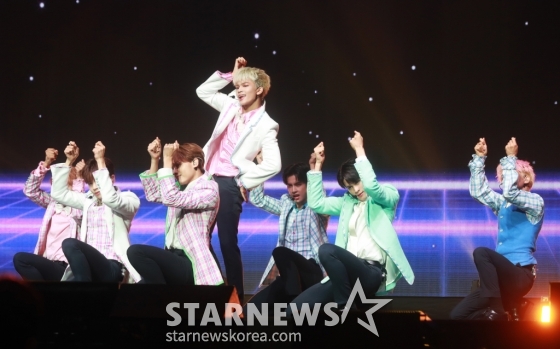 그룹 호라이즌(HORI7ON)이 24일 오후 서울 올림픽공원 올림픽홀에서 진행된 데뷔 정규앨범 'Friend-SHIP'(프렌드-십) 발매기념 쇼케이스에서 신곡을 선보이고 있다.