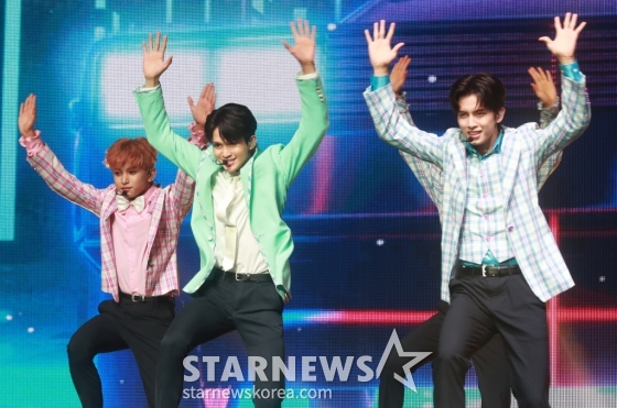 그룹 호라이즌(HORI7ON)이 24일 오후 서울 올림픽공원 올림픽홀에서 진행된 데뷔 정규앨범 'Friend-SHIP'(프렌드-십) 발매기념 쇼케이스에서 신곡을 선보이고 있다.