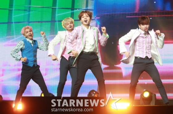 그룹 호라이즌(HORI7ON)이 24일 오후 서울 올림픽공원 올림픽홀에서 진행된 데뷔 정규앨범 'Friend-SHIP'(프렌드-십) 발매기념 쇼케이스에서 신곡을 선보이고 있다.