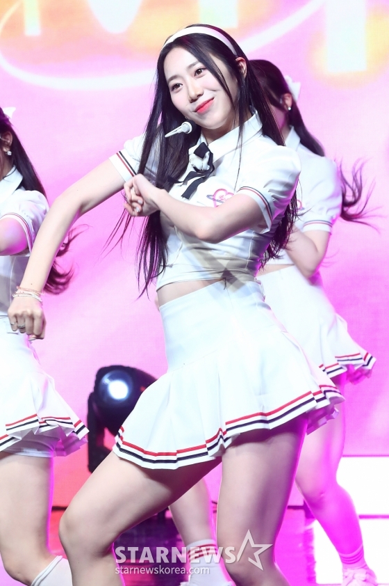 걸그룹 아일리원(ILY:1) 엘바가 25일 오후 서울 강남구 청담동 일지아트홀에서 진행된 두 번째 미니 앨범 'New Chapter(뉴 챕터)' 발매 기념 쇼케이스에 참석해 멋진 무대를 선보이고 있다.