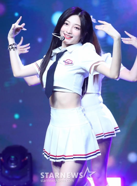 걸그룹 아일리원(ILY:1) 로나가 25일 오후 서울 강남구 청담동 일지아트홀에서 진행된 두 번째 미니 앨범 'New Chapter(뉴 챕터)' 발매 기념 쇼케이스에 참석해 멋진 무대를 선보이고 있다.