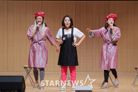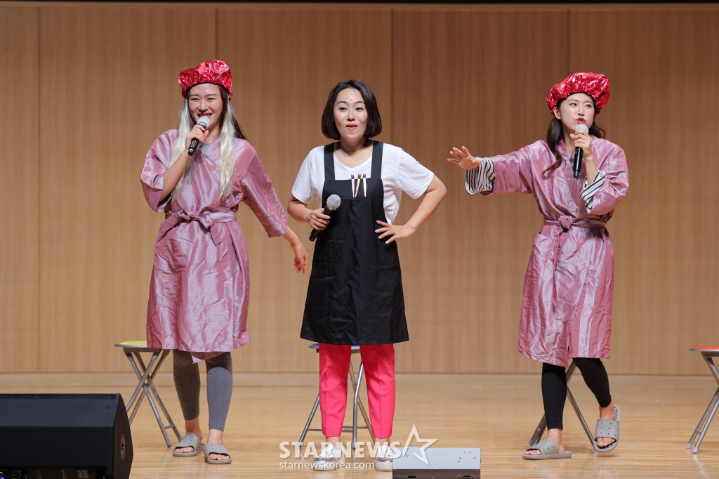 코미디언 김미려, 조승희, 김경아가 26일 부산 남구 부산은행 본점에서 제11회 부산국제코미디페스티벌의 일환으로 진행된 투맘쇼 공연에서 신나는 무대를 펼치고 있다. /사진제공=부산국제코미디페스티벌 조직위원회 2023.08.26