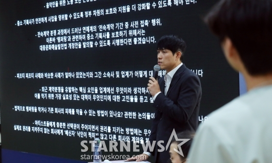 연예대중문화'대중음악산업 발전을 위한 세미나'[★포토]발행 : 2023.09.14 ・ 14:41김창현 기자윤동환 음악레이블협회장이 14일 오후 서울 마포구 창전동 라운지M에서 열린 '2023 대중음악산업 발전을 위한 세미나'에 참석해 참석자들과 대화를 나누고 있다.이날 세미나는 소속사와 아티스트에게 발생되고 있는 계약 분쟁 등에 대해 각 업계 전문가들의 의견을 듣고, 토론을 통해 해결 방안 및 대책을 찾기 위해 개최됐다. 2023.09.14<저작권자 © 스타뉴스, 무단전재 및 재배포 금지>아티스트소속사계약분쟁가수매니지먼트추천 기사김창현 기자기자홈좋아요 연예-대중문화의 인기 급상승 뉴스연예-대중문화의 최신 뉴스