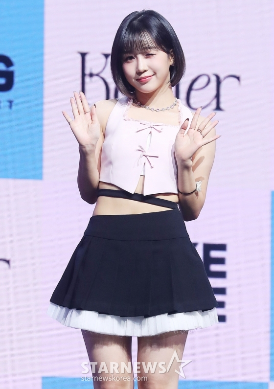 걸그룹 케플러가 25일 오후 광진구 예스24 라이브홀에서 진행된 다섯 번째 미니앨범 'Magic Hour (매직 아워)' 발매 기념 쇼케이스에 참석해 포즈를 취하고 있다.