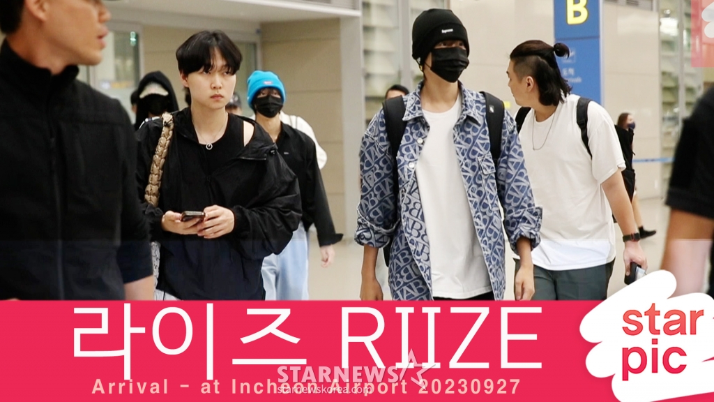 연예대중문화라이즈 '멋진 라이즈!' [★영상]발행 : 2023.09.27 ・ 07:43인천국제공항=임성균 기자그룹 라이즈(RIIZE) 쇼타로, 은석, 성찬, 원빈, 승한, 소희, 앤톤이 SM타운 자카르타 공연을 마치고 27일 오전 인천국제공항을 통해 입국하고 있다. 2023.09.27<저작권자 © 스타뉴스, 무단전재 및 재배포 금지>공항패션라이즈쇼타로은석성찬승한추천 기사임성균 기자기자홈좋아요 연예-대중문화의 인기 급상승 뉴스연예-대중문화의 최신 뉴스