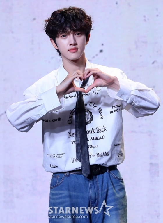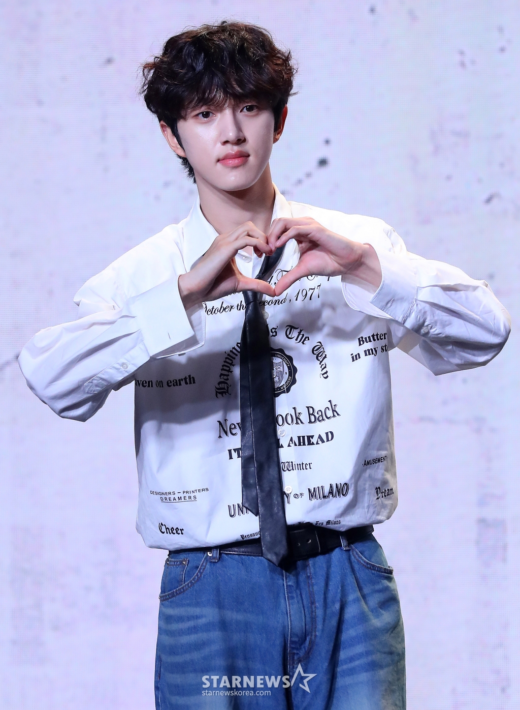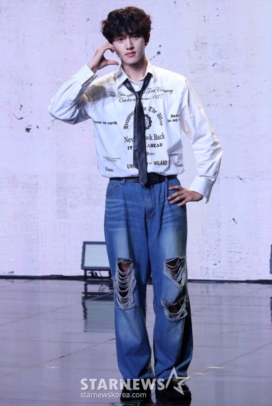 그룹 골든차일드(Golden Child) 봉재현이 2일 오후 서울 강남구 청담동 일지아트홀에서 진행된 세 번째 싱글 '필 미(Feel me)' 발매 기념 쇼케이스에 참석해 포즈를 취하고 있다.