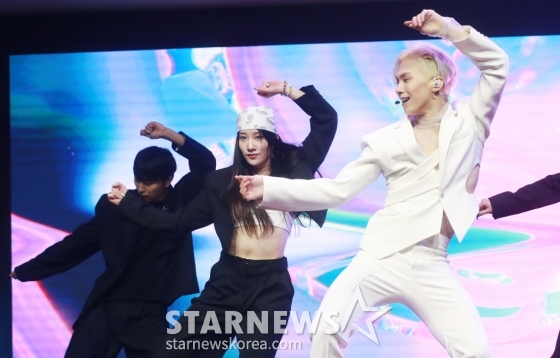 가수 라키(ROCKY)가 22일 오후 서울 강서구 스카이아트홀에서 진행된 미니 1집 '라키스트'(ROCKYST) 발매기념 쇼케이스에서 신곡을 선보이고 있다.