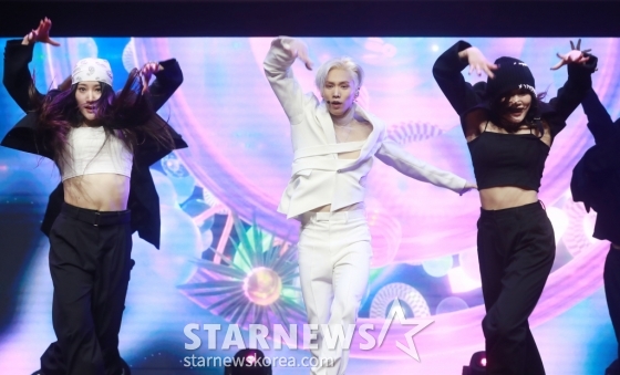 가수 라키(ROCKY)가 22일 오후 서울 강서구 스카이아트홀에서 진행된 미니 1집 '라키스트'(ROCKYST) 발매기념 쇼케이스에서 신곡을 선보이고 있다.