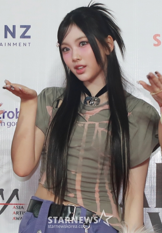 걸그룹 뉴진스 혜인이 14일 필리핀 아레나에서 열린 '2023 아시아 아티스트 어워즈 인 필리핀'(2023 Asia Artist Awards IN THE PHILIPPINES, 이하 '2023 AAA') 레드카펫 행사에 참석해 포즈를 취하고 있다.
