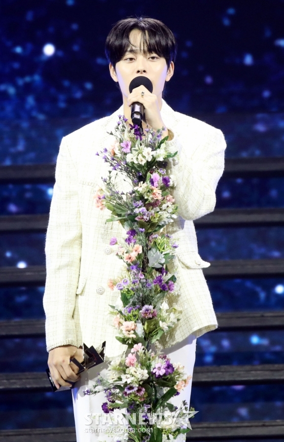 배우 유선호가 14일 필리핀 아레나에서 열린 '2023 아시아 아티스트 어워즈 인 필리핀'(2023 Asia Artist Awards IN THE PHILIPPINES, 이하 '2023 AAA')에서 'AAA 포텐셜 상'을 수상하고 소감을 말하고 있다.