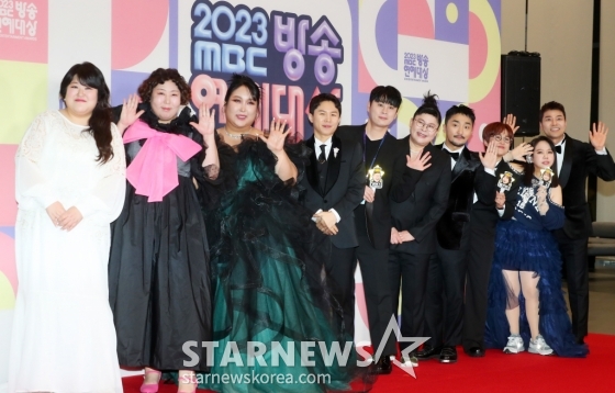 연예대중문화'전참시' 꽉 차는 포토월[★포토]발행 : 2023.12.29 ・ 19:34김창현 기자'전지적 참견 시점' 이국주, 신기루, 풍자, 양세형, 송실장, 이영자, 유병재, 송은이, 홍현희, 전현무가 29일 오후 서울 마포구 상암동 MBC 사옥에서 진행된 '2023 MBC 방송연예대상' 레드카펫 행사에 참석해 포즈를 취하고 있다. 2023.12.29<저작권자 © 스타뉴스, 무단전재 및 재배포 금지>MBCMBC연예대상연예대상레드카펫포토이국주추천 기사김창현 기자기자홈좋아요 연예-대중문화의 인기 급상승 뉴스연예-대중문화의 최신 뉴스